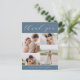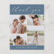 Elegant wedding thank you postcards feature four photos arranged in a grid collage layout on a dusty blue background. "Thank You" appears at the top in chic calligraphy script, with your names along the bottom in classic block lettering. Add a personal message and signature to the colour-coordinated back.