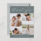 Elegant wedding thank you postcards feature four photos arranged in a grid collage layout on a dark sage green background. "Thank You" appears at the top in chic calligraphy script, with your names along the bottom in classic block lettering. Add a personal message and signature to the colour-coordinated back.
