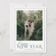 A timeless New Year photo card featuring a clean double-border frame that adds elegance and structure to your favorite family photo. The refined “Happy New Year” greeting blends classic typography with a soft script accent for a beautifully balanced, celebratory feel. Personalized details at the bottom create a polished finishing touch. The back includes space for three additional photos, giving you the perfect way to share more joyful moments as you welcome a bright new year ahead.