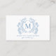 Classic French Blue Floral Crest Monogram QR Code Business Card
