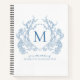 Classic French Blue Floral Crest Monogram Recipe Notebook