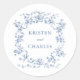 Classic French Blue Flowers & Ribbons Wedding Classic Round Sticker