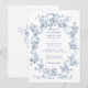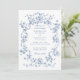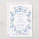 Classic French Blue Flowers & Ribbons Wedding Invitation