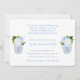 The front of this classic baby shower invitation design features blue and white watercolor florals in a ginger jar vase. The reverse of the invite features pale blue and white seersucker stripes. You can change the blue to any color you like by entering the design tool (click or tap to customize further) and changing the background color.