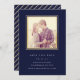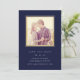 Simple, chic, and feminine; this save the date design uses deep navy blue and white text, with a shimmery faux gold border, to set a romantic tone. Minimal typography ensures guests know that the wedding will be formal, while providing all details through the wedding website.