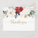 This classic gold burgundy white floral thank you postcard is perfect for a rustic wedding. The design features watercolor white, burgundy and gold flowers and berries with green foliage arranged into elegant bouquets.