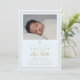 A sweet baptism invitation featuring a beautiful gold glitter frame and cross detail with customer photo and classic editable baptism text.