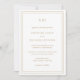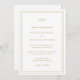 Classic style faux gold wedding invitation featuring a simple and minimal design with your monogram at the top and your event details surrounded by a double border. The fonts alternate between and elegant script, a traditional serif and minimalist sans serif fonts. This invitation is great for a formal wedding.