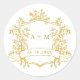 Classic Gold Floral Crest Monograms Round Sticker