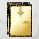 WEDDING GOLD | Real Foil Front - Features a classy flapper girl and crystal chandelier- in Art Deco Style of the roaring 20's, Roaring Twenties Gatsby Style A black background highlights the intricate geometric Art Deco style design and lettering . Portions of the front design are real foil with part of the design showing through in the design colours, The reverse is NOT foil but matching colours to the front.