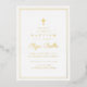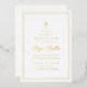 A classic baptism foil invitation featuring a simple frame border and cross with editable script name and text. Click the edit button to customise this design.