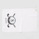 This unique classic black and white monogrammed golf towel features crossed golf clubs with ball holding the monogram initial, and the name underneath.