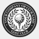 Create your own personalised golf stickers A classic design featuring a victory laurel wreath, framing a ball and tee. This editable template can be customised for a golf club, country club, company name, team player, golf club member or individual golfer. Perfect for commemorating special days, corporate events, competitions, tournaments and more. Printing colours: black and white. Explore the online collection for matching printed designs!