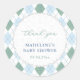 Classic blue and green argyle print favour sticker design for a golf-theme baby shower to welcome a little boy, featuring a golf ball with text overlay. All artwork was created by me.