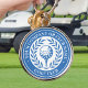 Create your own personalised golf keychain. A classic design featuring a victory laurel wreath, framing a ball and tee. This editable template can be customised for a golf club, country club, company name, team player, golf club member or individual golfer. Perfect for commemorating special days, corporate events, competitions, tournaments and more. Printing colours: blue and white. Explore the online collection for matching printed designs!
