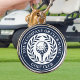 Create your own personalised golf keychain. A classic design featuring a victory laurel wreath, framing a ball and tee. This editable template can be customised for a golf club, country club, company name, team player, golf club member or individual golfer. Perfect for commemorating special days, corporate events, competitions, tournaments and more. Printing colours: dark midnight blue and white. Explore the online collection for matching printed designs!