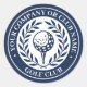 Create your own personalised golf stickers! A classic design featuring a victory laurel wreath, framing a ball and tee. This editable template can be customised for a golf club, country club, company name, team player, golf club member or individual golfer. Perfect for commemorating special days, corporate events, competitions, tournaments and more. Printed colours: dark midnight blue and white. Shop the collection for more popular golf gift ideas for sale online!
