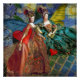 Step into a world of whimsical fantasy with this unique design featuring two classically styled women adorned with vibrant butterfly wings, set against a stunning, star-filled night sky. One woman, in a rich red gown, holds a delicate fan, while her companion in an elegant teal dress is engrossed in a book. Both wear elaborate, feathered headdresses and regal crowns, evoking a sense of historical grandeur blended with magical allure. A heart motif subtly ties the composition together, making this design perfect for those who appreciate rococo elegance, gothic charm, and a touch of the fantastical.
