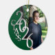 Graduates will love this custom holiday photo ornament available in their own school colors This silver and green "Class 2026" photo ornament can be customized with a name and text on the back or add another photo.