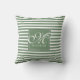 NewParkLane - Classic and chic personalised throw pillow, with a red frame for your name and monogram in elegant script typography, against a green and white striped background. Easy to customise in Zazzle with your own text for a personalised design. All text styles, colours & sizes can be modified to fit your needs.