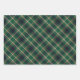 This elegant and contemporary gift wrapping paper set showcases a plaid pattern in shades of green, dark blue, and red, creating a classy and nostalgic English holiday atmosphere. The paper is perfect for wrapping Christmas gifts in a classic colonial style and complements a charming country cottage or log cabin theme.