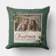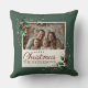 Celebrate the holidays with this classic green botanical Christmas pillow, featuring elegant holly and berry illustrations framing your custom family photo. The timeless forest green background and personalized text make it the perfect cozy accent for your living room or a heartfelt Christmas gift.