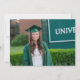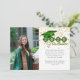 This classic graduation announcement card features graduate cap and shields along with your graduating year in green and gold on gold confetti and your favourite photo. Back features a second photo. Easy to personalise with custom options. Use the 'Personalise' button to customise the product.