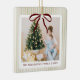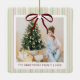 Classic Green Pink Stripes Red Bow Christmas Ceramic Ornament