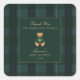 Classic Green Plaid Bear Baby Shower Thank You Square Sticker