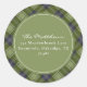 Classic green plaid round return address label, customisable with your family name and address. A timeless and festive touch for holiday cards, gifts, and mail.