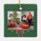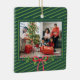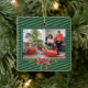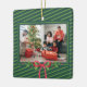 Classic Green Stripe Festive Holiday Family Photo Ceramic Ornament