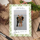 Spread holiday cheer to family and friends this season with our Classic Adorable Green Tartan Plaid Custom Photo Christmas Holiday Card. Featuring a timeless green gingham plaid design, this card is perfect for showcasing your favourite vertical or portrait photo, creating a truly personal touch. The reverse side offers space for a custom message, set against a matching green background, which you can easily edit or remove to suit your needs. You can also customise the colours to complement your photo palette, making this card as unique as your holiday memories