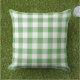 A classic green and white gingham plaid outdoor pillow with a fresh small-scale check pattern. The green gingham brings a natural, garden-inspired accent to patio furniture, porch seating, or deck chairs. A timeless pattern that works beautifully for spring, summer, and year-round outdoor styling.