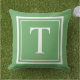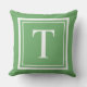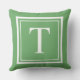 A classic outdoor pillow featuring a bold white monogram initial inside a square frame border on a rich green background. The timeless serif letter and clean geometric frame deliver a fresh, preppy accent for patio seating or garden furniture. The initial is fully customisable.