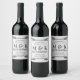Classic Grey Acanthus Leaf Monogram Elegant Stripe Wine Label