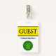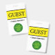 This nostalgic badge design features the message "GUEST", and a customisable company name or other custom message. A badge like this could maybe be used to show that somebody at a business or workplace is an authorised guest or visitor. [~Z0000307]