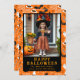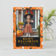 This custom photo Halloween card exudes nostalgic charm with its delightful retro vintage design. The front of the card is framed by a whimsical border featuring classic Halloween motifs—playful ghosts, fluttering bats, mischievous black cats, intricate spider webs, a variety of candies, and twinkling stars—all set against a vibrant orange background that evokes the festive spirit of the season. The centerpiece is your favourite photo, beautifully displayed with the words “Happy Halloween” elegantly scripted alongside your names, adding a personal touch to your seasonal greetings. Flip the card over to discover the same enchanting retro Halloween pattern enveloping the entire back, creating a cohesive and eye-catching design that captures the magic and nostalgia of Halloween. Perfect for sending warm, spooky wishes to friends and family, this card is a charming way to celebrate the season.