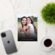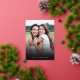 These stylish holiday photo cards feature a full bleed photo template, elegant modern typography reading, "Happy Holidays" in real gold foil, and a hand drawn floral pattern on the back in classic Christmas colours of deep green, burgundy red, and ivory over a sand / beige background. Easy to personalise for beautiful holiday cards that will wow all of your family and friends.