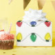 This wrapping paper is decorated with strings of classic Christmas lights glowing red, green, blue, and yellow. The lights are styled after classic large glass bulbs.