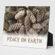 Festive, earthy pine cones set off this classic, elegant design wishing Peace On Earth. Ready to be custom personalized.