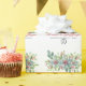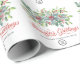 Classic winter greenery - green holly and red berries. Two lines of text to personalise the gift wrap with business logo.