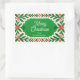 Brighten your holiday mail with this customisable Christmas sticker. The festive Christmas green background is beautifully framed by an ornate border of lush green pine needles and vibrant red berries. In the centre, elegant white script lettering spells out "Merry Christmas," with space below for your family name. This sticker adds a personalised, elegant touch to all your holiday greetings.
