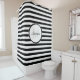A classic black and white horizontal stripes shower curtain. Personalise this trendy pattern by adding your name and monogrammed initial. This contemporary monogram design is part of the Black Stripes Bathroom Decor Summer Colour Collection.