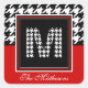 Classic Houndstooth & Monogram | Red Black White Square Sticker