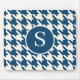 Classic Houndstooth Pattern Blue & White Monogram Mouse Pad