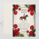 Embrace the timeless tradition of the "Run for the Roses" with this sophisticated Kentucky Derby invitation. Featuring a majestic jockey on horseback surrounded by lush red roses and framed by a classic black-and-white checkered racing flag border. The vintage parchment background adds a touch of old-world elegance, perfect for a high-society derby event.