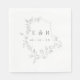 Elegant wedding napkins perfect for your wedding cocktail hour, featuring a shield crest adorned with watercolor grey leaves, with your monogram and wedding date in grey in the centre.