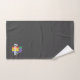 Classic style letter B logo coloured monogram dark grey bath towel set. This set features bath towels with a classic style letter B logo. The logo is a coloured monogram design. The towels and monogram are dark grey. The bath towel set offers a classic and stylish look to your bathroom decor.