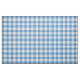 Stylish geometric fabric features a classic light blue and white gingham plaid. Baby blue, white, and pale blue squares form a bold, checked plaid. Perfect for home decor and accessories.