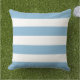 A classic outdoor pillow featuring soft light blue and white wide horizontal stripes. The gentle cabana stripe pattern brings a cool, airy feel to patio furniture, garden seating, or covered porches. A calming accent that pairs effortlessly with coastal, cottage, or preppy outdoor decor.